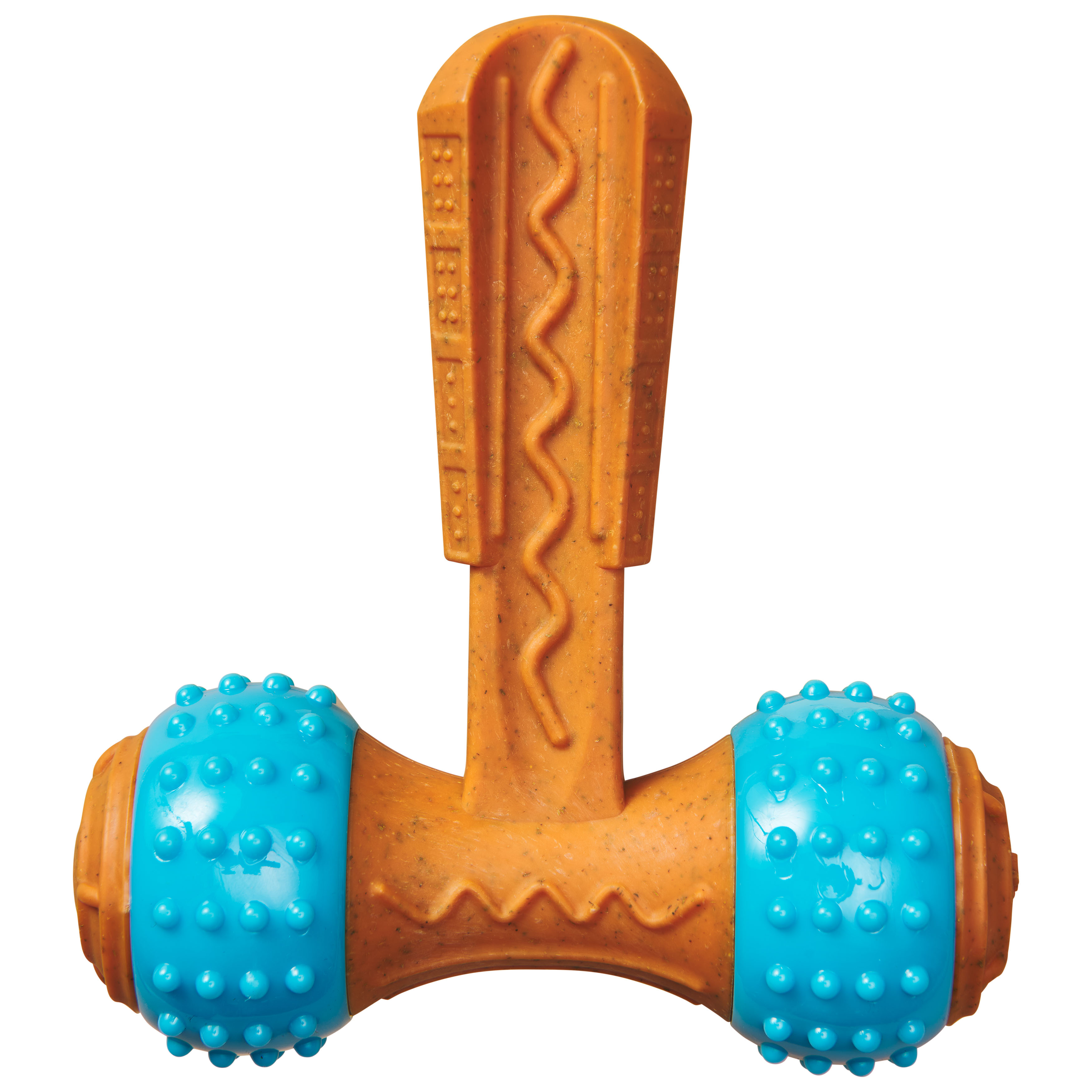 Playtime that cleans. Make dental care feel like playtime with the toy that entertains and cleans at the same time. While your dog is happily gnawing, textured ridges naturally help clean teeth, massage gums, and freshen breath. Made with a blend of nylon and natural bamboo fibers for durability. Infused with mint + baking soda for a fresh, clean mouth. Easy-to-grip shape lets dogs hold it steady with their own paws….and it’s fun to chew.