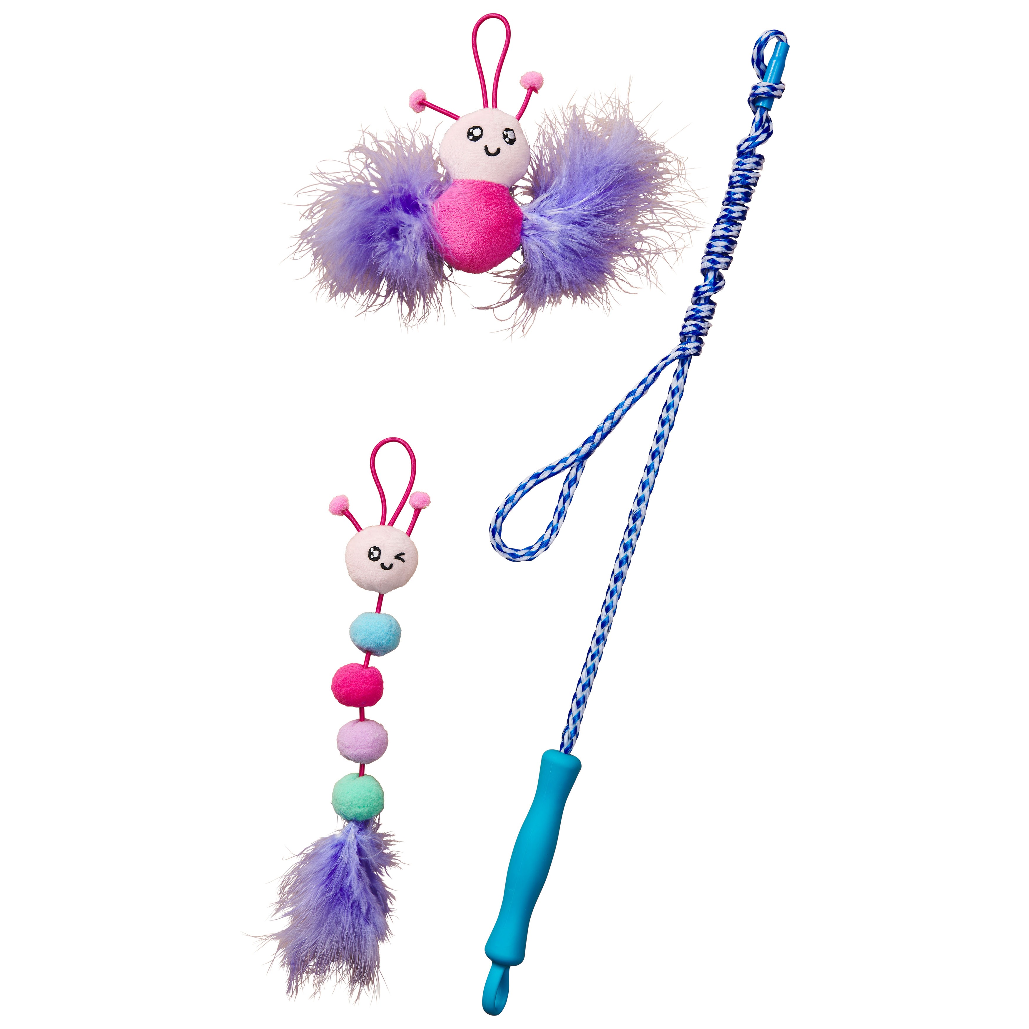 Loop your kitty into hours of fun! The Loopity Loop Cat Teaser Wand is designed for non-stop playtime with a twist (or should we say…a loop!) The durable braided rope features a handy loop at the end, so when it’s time to switch things up just swap in the second toy with its own built-in loop for double the entertainment. Features durable braided rope built to withstand active play, two interchangeable toys, butterfly and caterpillar, for variety and excitement plus a soft rubber handle that provides a secure, comfortable grip. Encourages exercise and satisfies natural hunting instincts. Promotes interactive play and bonding between you and your cat.
