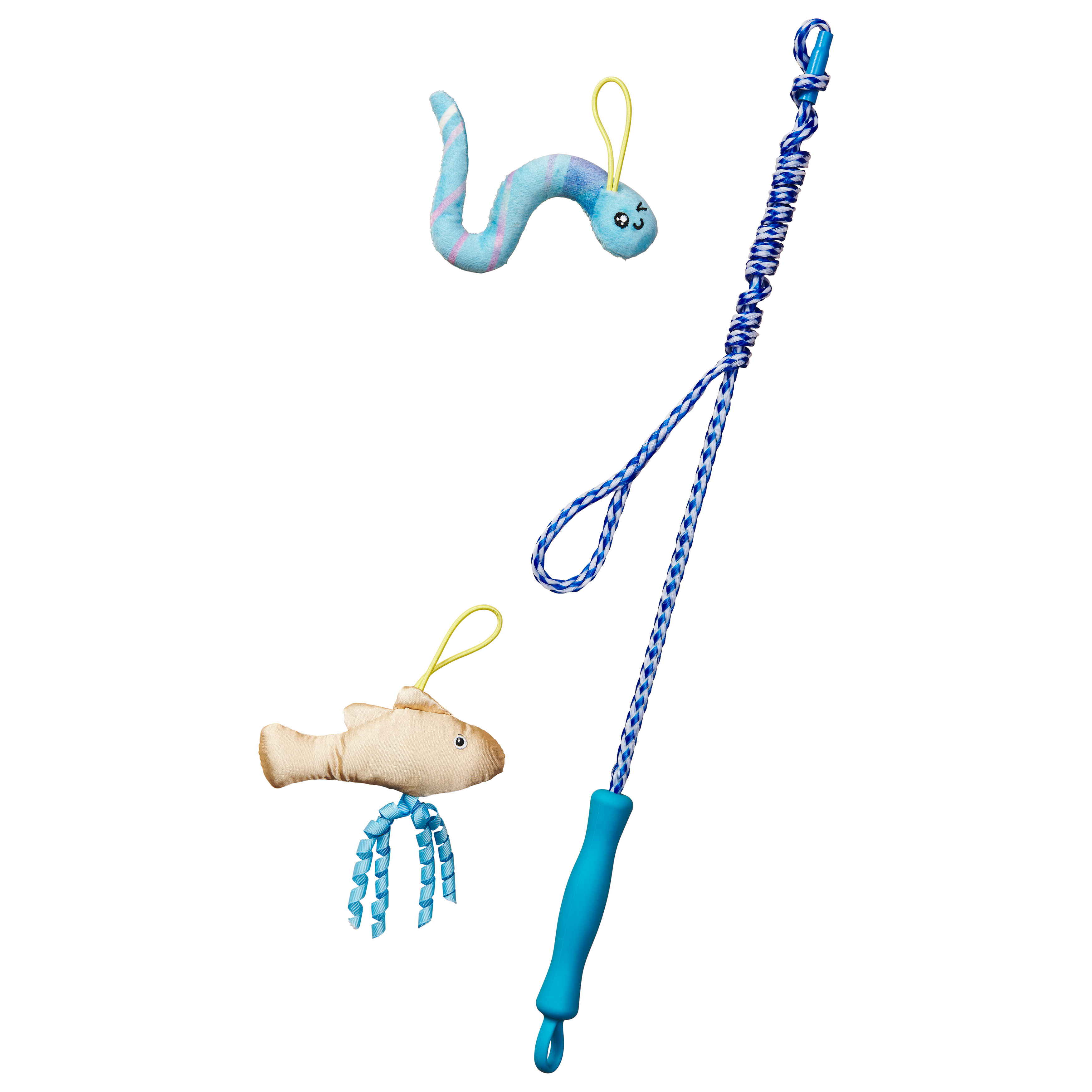 Loop your kitty into hours of fun! The Loopity Loop Cat Teaser Wand is designed for non-stop playtime with a twist (or should we say…a loop!) The durable braided rope features a handy loop at the end, so when it’s time to switch things up just swap in the second toy with its own built-in loop for double the entertainment. Features durable braided rope built to withstand active play, two interchangeable toys, fish and worm, for variety and excitement plus a soft rubber handle that provides a secure, comfortable grip. Encourages exercise and satisfies natural hunting instincts. Promotes interactive play and bonding between you and your cat.