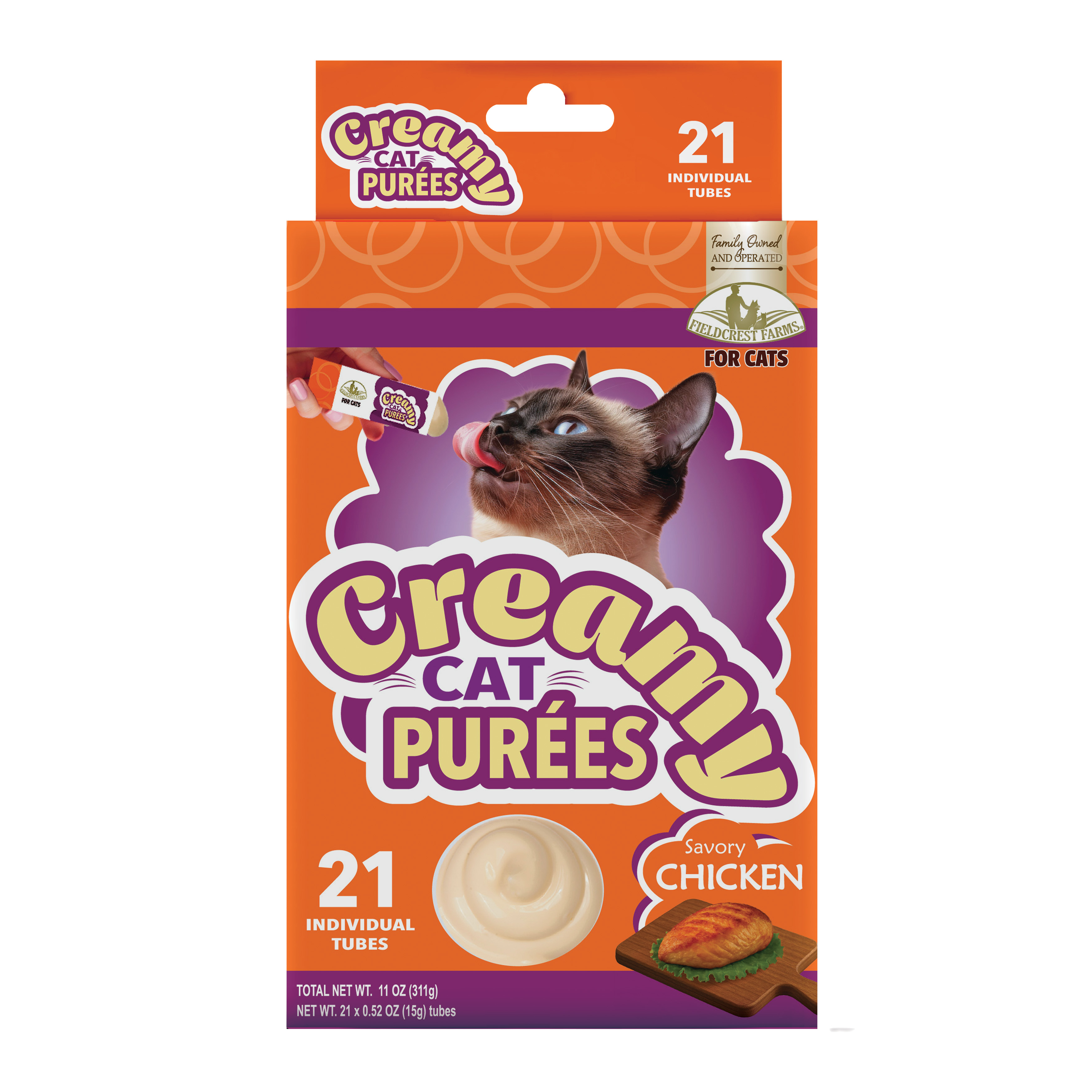 Treat your feline friend to an irresistibly creamy delight! Perfect for bonding, rewarding or simply spoiling your cat. Our easy-squeeze tubes ensure a hydrating, mess-free treat anytime, anywhere. 21 tubes of chicken puree in a box.