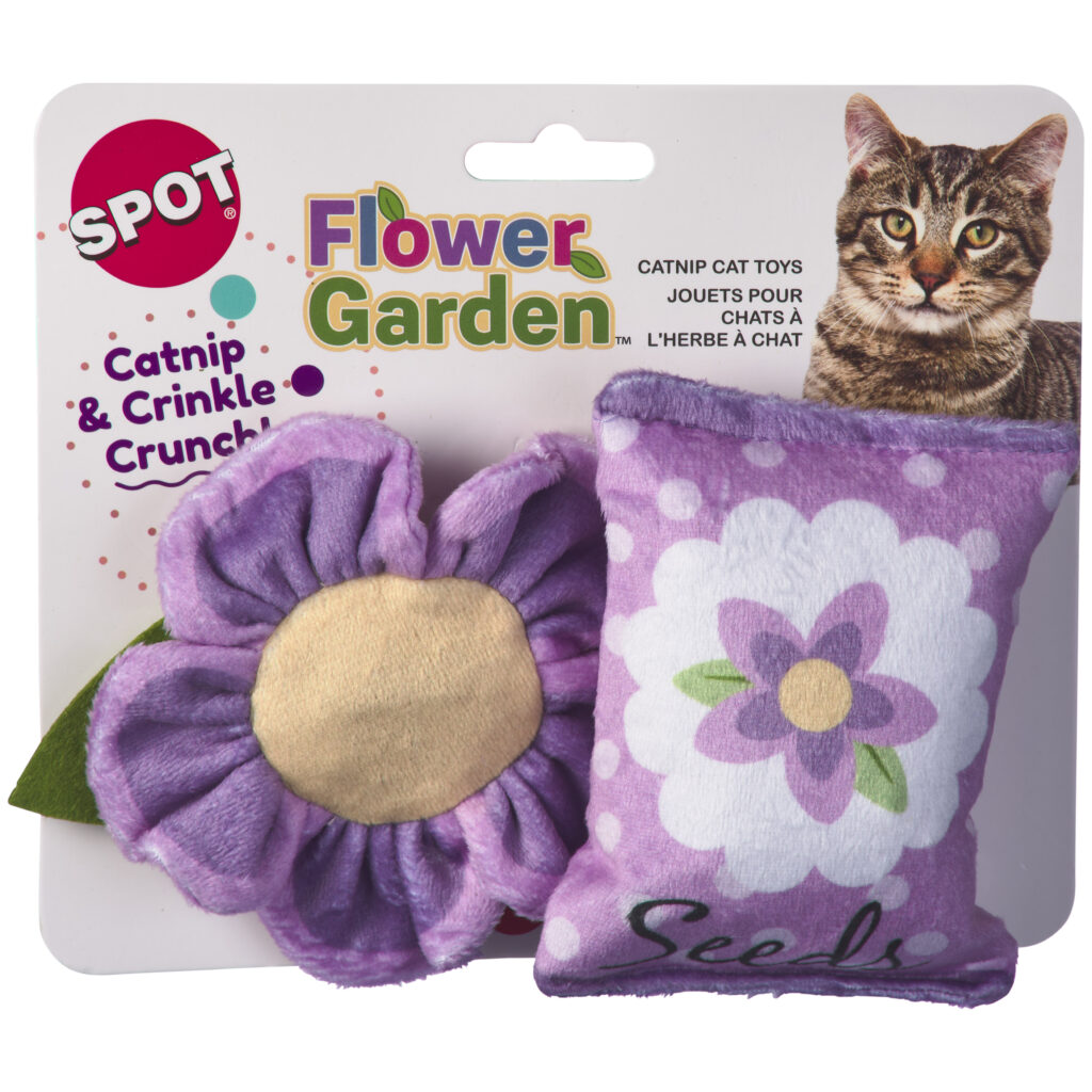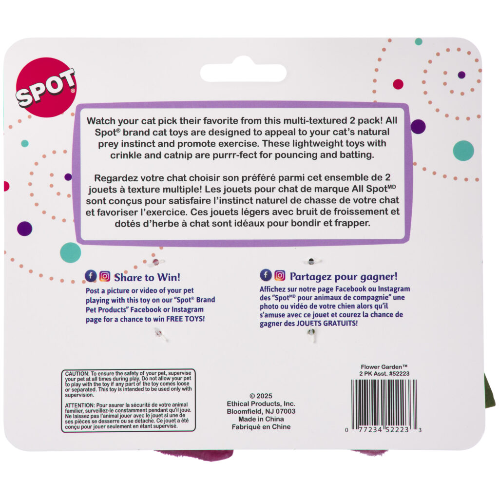 Watch your cat pick their favorite from this multi-textured 2 pack! All Spot brand cat toys are designed to appeal to your cat’s natural prey instinct and promote exercise. These lightweight flower garden toys with crinkle and catnip are purrfect for pouncing and batting.