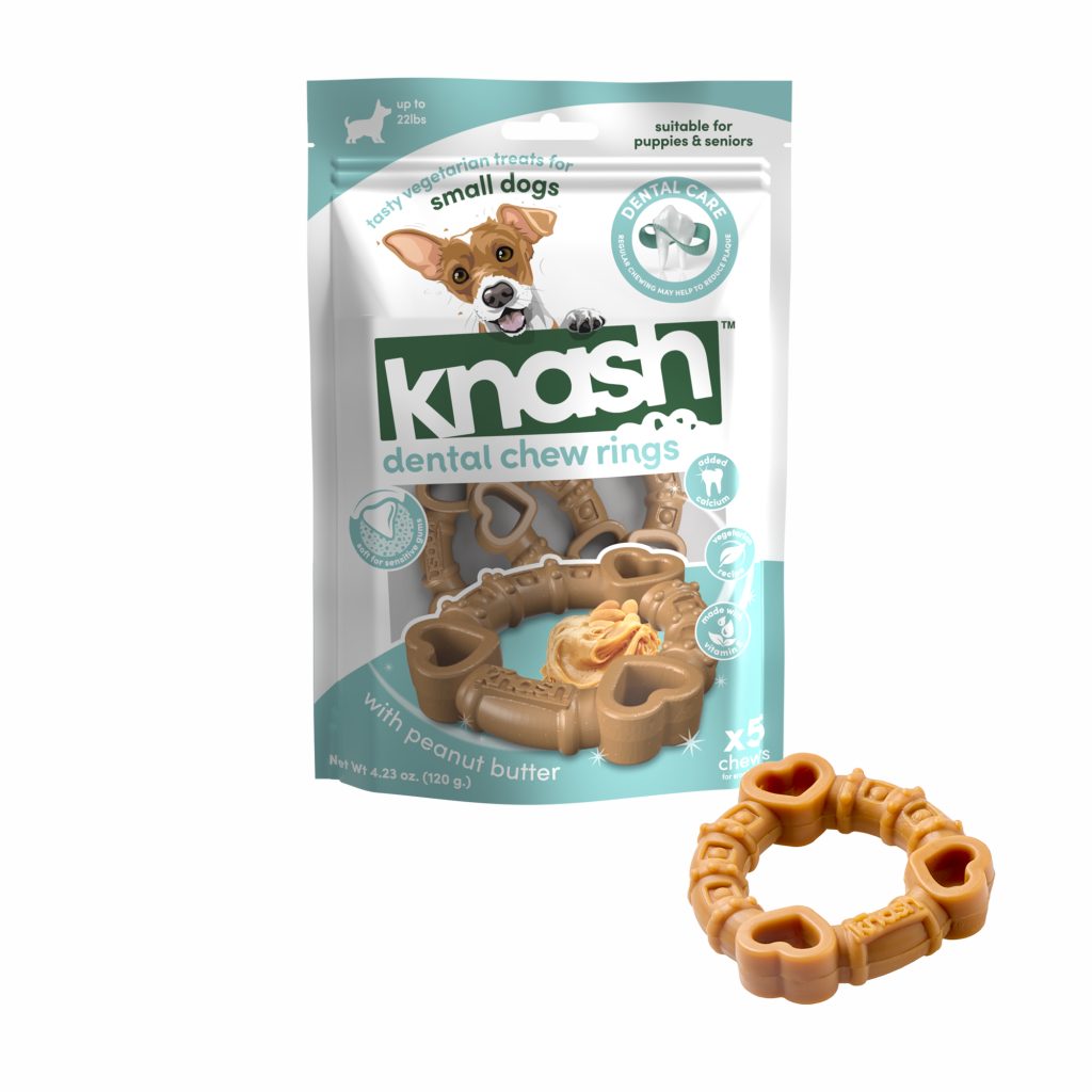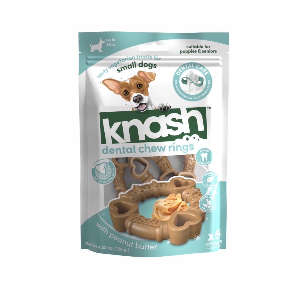 Treat your dog’s knashers with Knash. Uniquely textured chews, packed with tasty ingredients and no added artificial colors or flavors. Helps reduce plaque and maintain healthy teeth & gums.