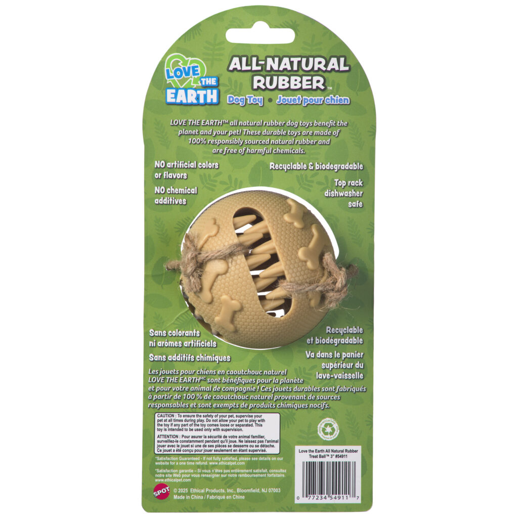 LOVE THE EARTH NATURAL RUBBER TREAT BALL 3″