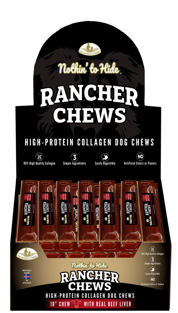 Rancher Chews are proudly made in Iceland, made with real ingredients for a clean, natural treat you’ll feel good about giving your dog. Each chew has a unique look and feel and softens during chew time, encouraging a steady, satisfying gnaw that helps keep your chewer engaged. Packed with high-quality protein and designed to be long-lasting yet easily digestible, these chews deliver simple goodness with simple ingredients.