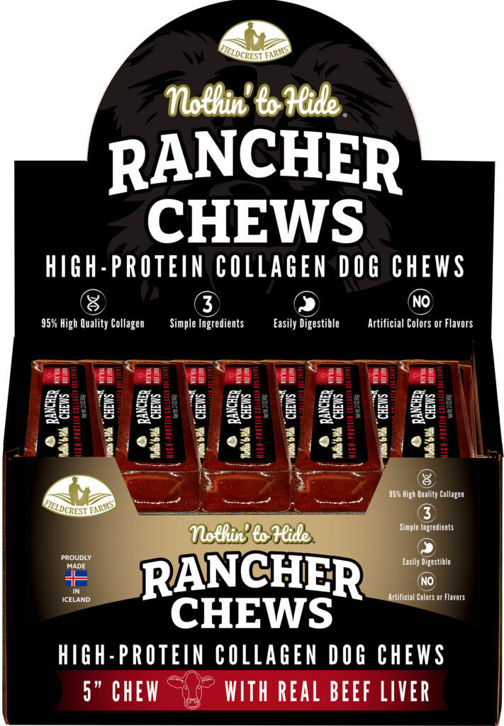 Rancher Chews are proudly made in Iceland, made with real ingredients for a clean, natural treat you’ll feel good about giving your dog. Each chew has a unique look and feel and softens during chew time, encouraging a steady, satisfying gnaw that helps keep your chewer engaged. Packed with high-quality protein and designed to be long-lasting yet easily digestible, these chews deliver simple goodness with simple ingredients.