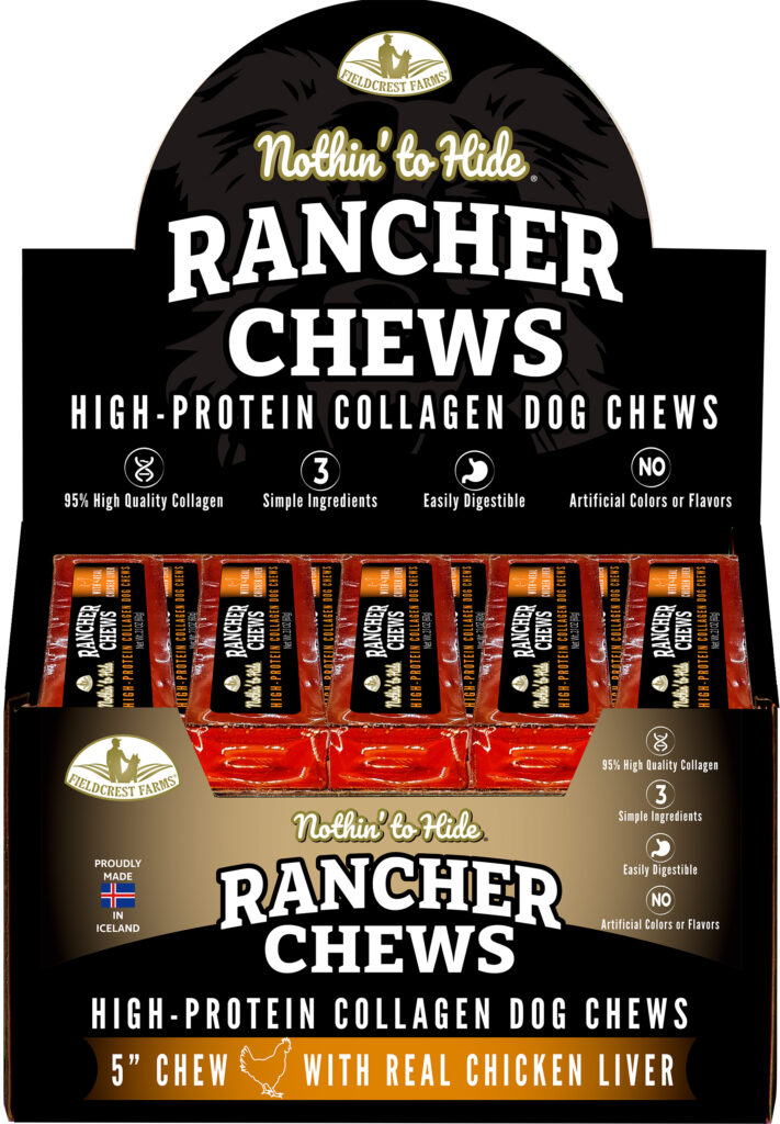Rancher Chews are proudly made in Iceland, made with real ingredients for a clean, natural treat you’ll feel good about giving your dog. Each chew has a unique look and feel and softens during chew time, encouraging a steady, satisfying gnaw that helps keep your chewer engaged. Packed with high-quality protein and designed to be long-lasting yet easily digestible, these chews deliver simple goodness with simple ingredients.