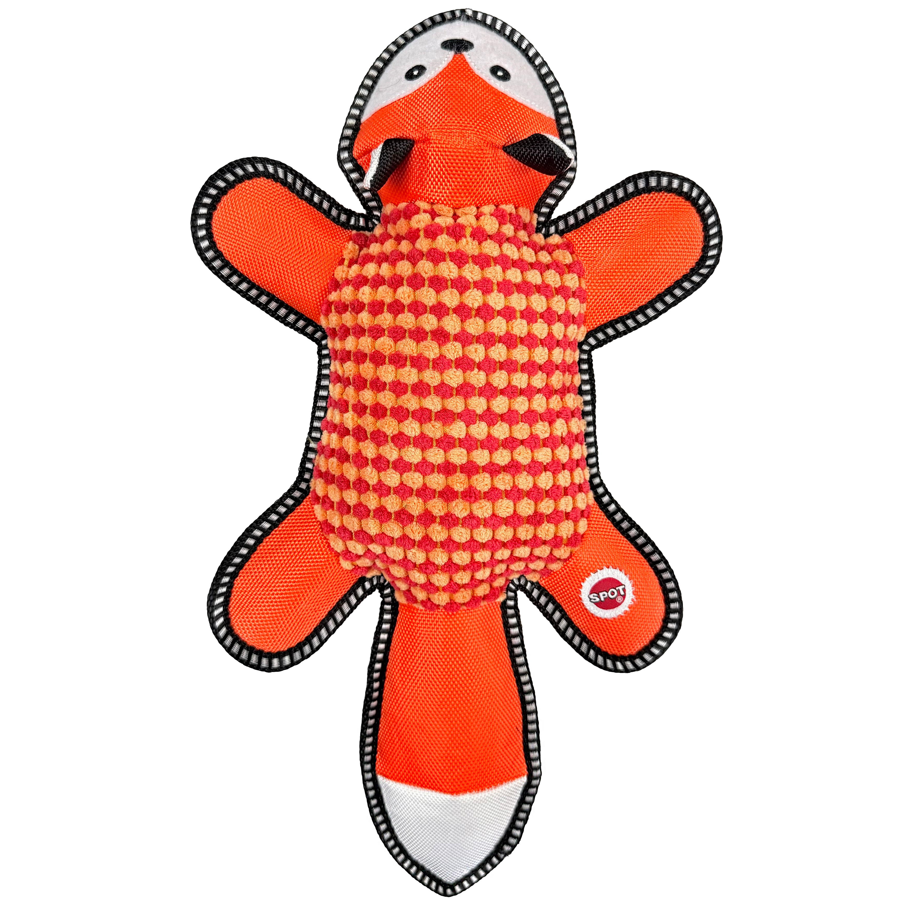 The Dura-Fused BIG ballistic barnyard fox dog toy is as sturdy as…well…a barn! Durable ballistic nylon with a textured fabric exterior, felt and ballistic nylon web lining and reinforced binding allow this toy to withstand all the gnawing and tugging your dog can dish out. Features double stitched seams with heavy duty thread. These are big toys made for ruff playtime. Plus, it squeaks!