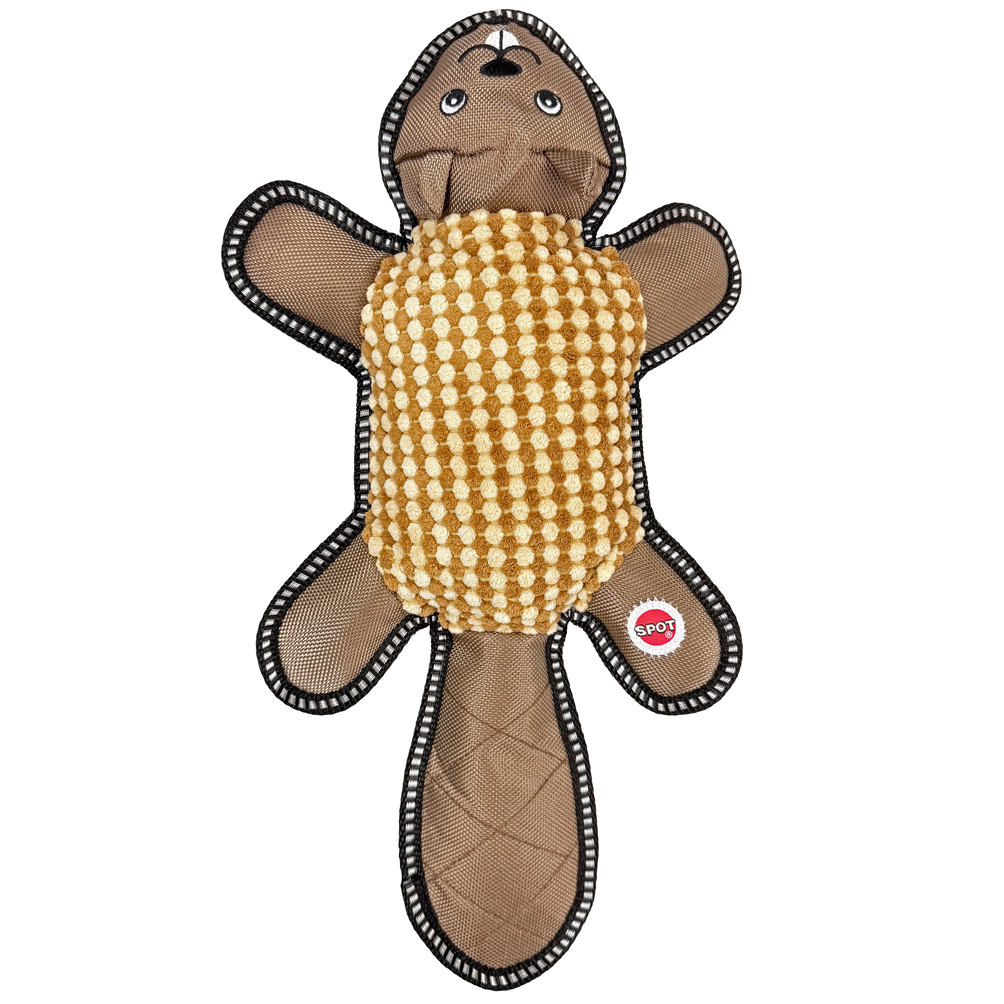The Dura-Fused BIG ballistic barnyard beaver dog toy is as sturdy as…well…a barn! Durable ballistic nylon with a textured fabric exterior, felt and ballistic nylon web lining and reinforced binding allow this toy to withstand all the gnawing and tugging your dog can dish out. Features double stitched seams with heavy duty thread. These are big toys made for ruff playtime. Plus, it squeaks!