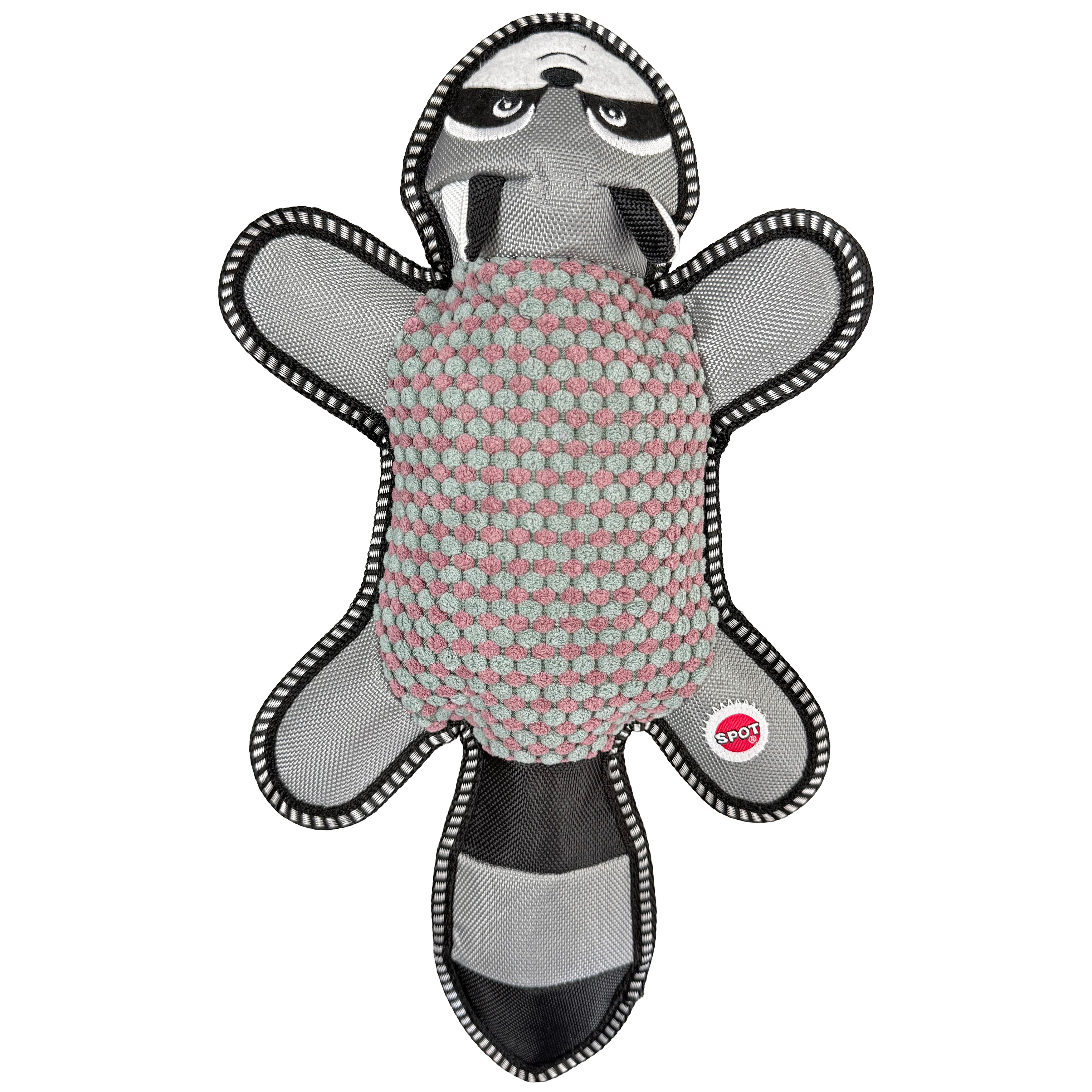 The Dura-Fused BIG ballistic barnyard raccoon dog toy is as sturdy as…well…a barn! Durable ballistic nylon with a textured fabric exterior, felt and ballistic nylon web lining and reinforced binding allow this toy to withstand all the gnawing and tugging your dog can dish out. Features double stitched seams with heavy duty thread. These are big toys made for ruff playtime. Plus, it squeaks!