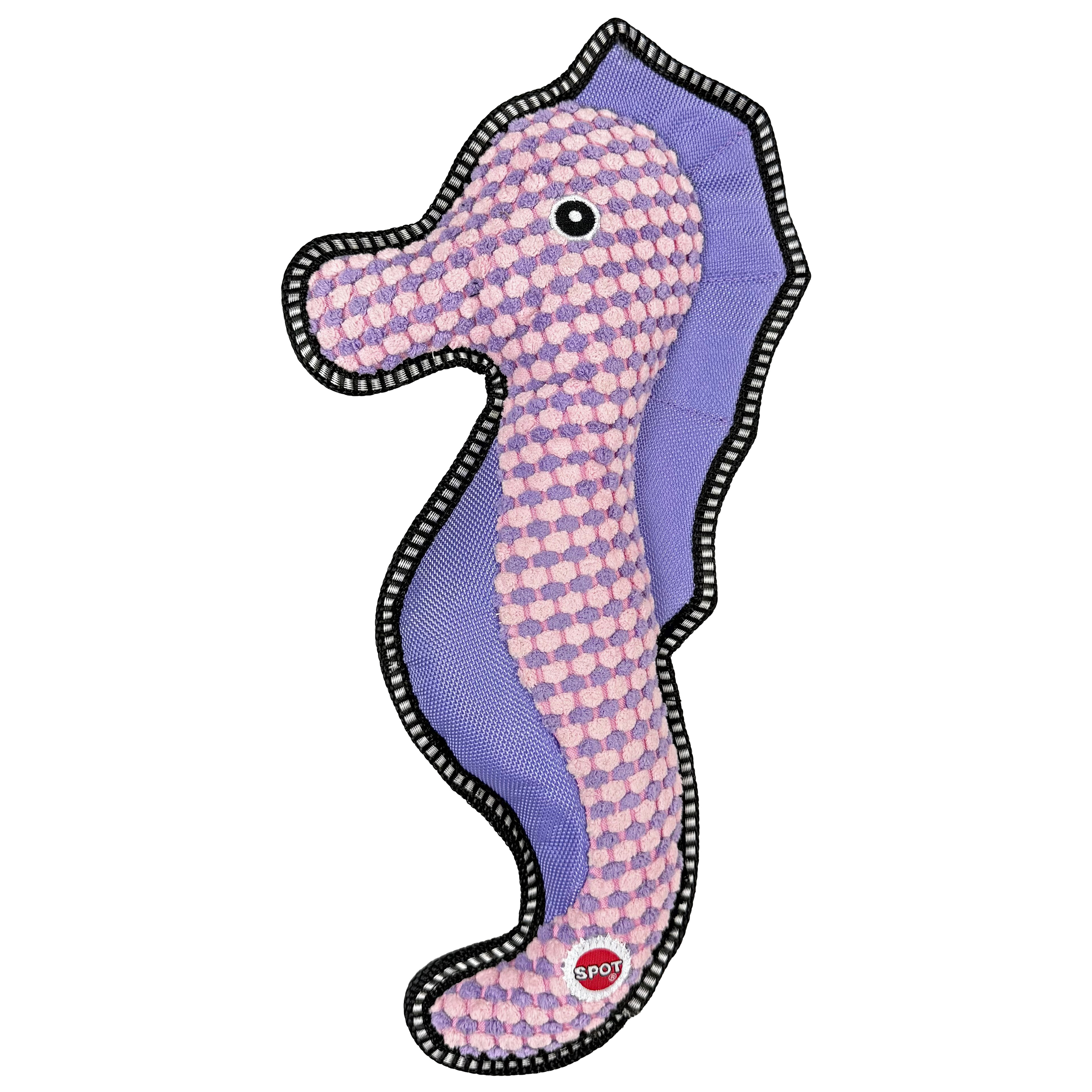 The Dura-Fused BIG ballistic sea creature seahorse dog toy will be your dog's new ocean buddy. Make waves with this durable ballistic nylon toy with a textured fabric exterior, felt and ballistic nylon web lining and reinforced binding allowing this toy to withstand all the gnawing and tugging your dog can dish out. Features double stitched seams with heavy duty thread. These are big toys made for ruff playtime. Plus, it squeaks!