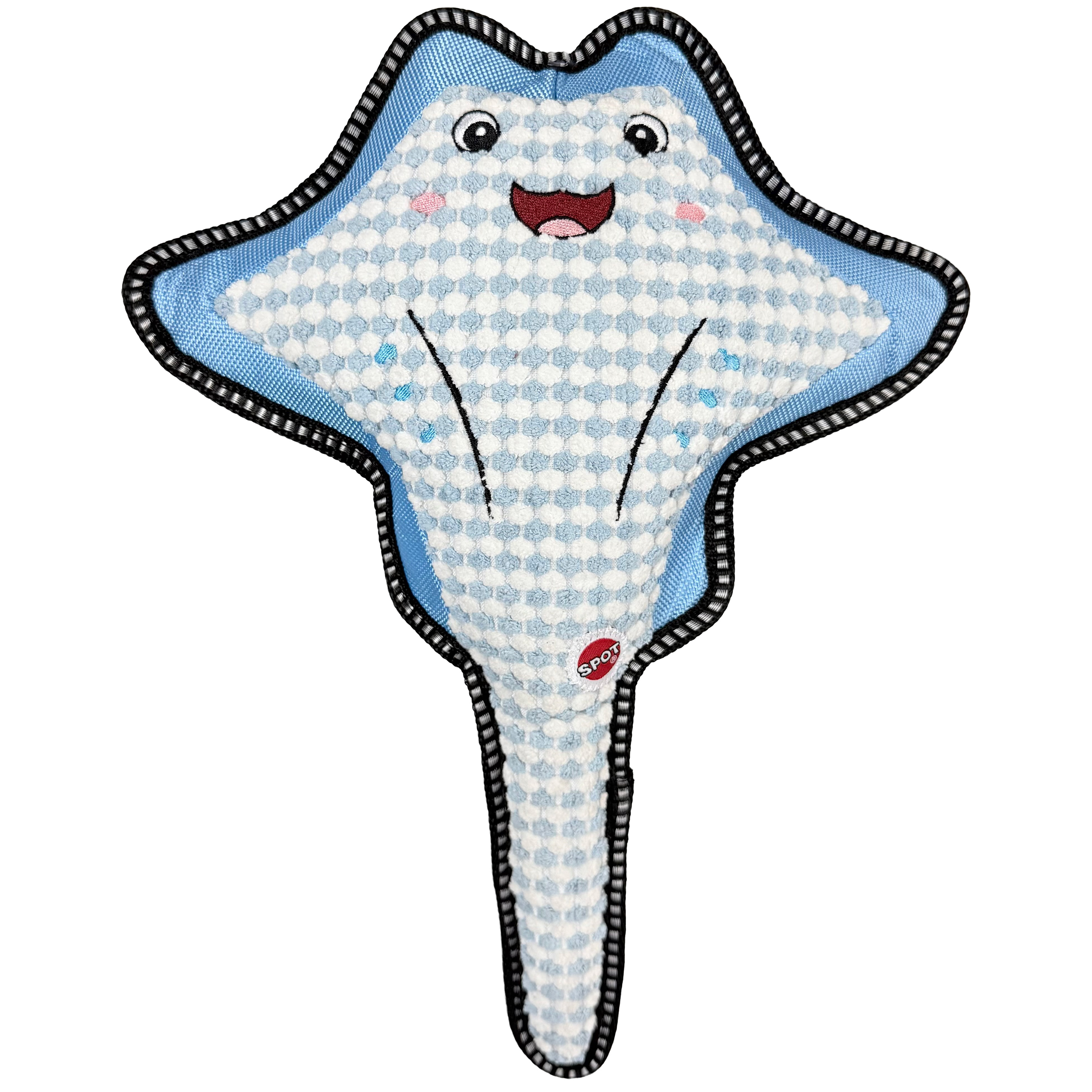 The Dura-Fused BIG ballistic sea creature manta ray dog toy will be your dog's new ocean buddy. Make waves with this durable ballistic nylon toy with a textured fabric exterior, felt and ballistic nylon web lining and reinforced binding allowing this toy to withstand all the gnawing and tugging your dog can dish out. Features double stitched seams with heavy duty thread. These are big toys made for ruff playtime. Plus, it squeaks!