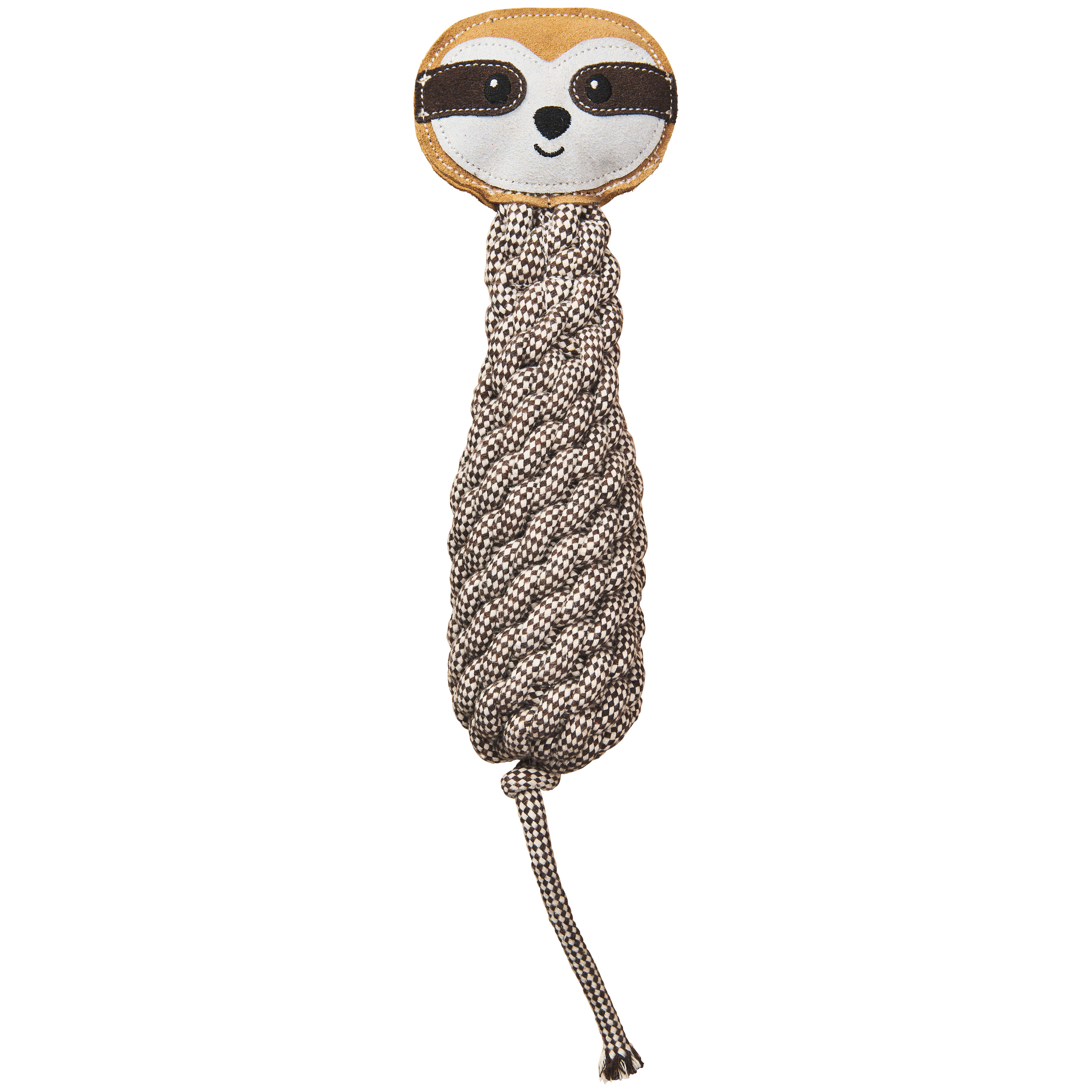 Dura-Fused Leather bottle Sloth combines the durability of leather and rope with a fun water bottle. Super durable leather and jute fabric fused together for added strength. Squeak and crunch sounds satisfy the natural hunting instinct and provides interaction and stimulation. 16" tall and easy to pick up for a fun game of fetch.