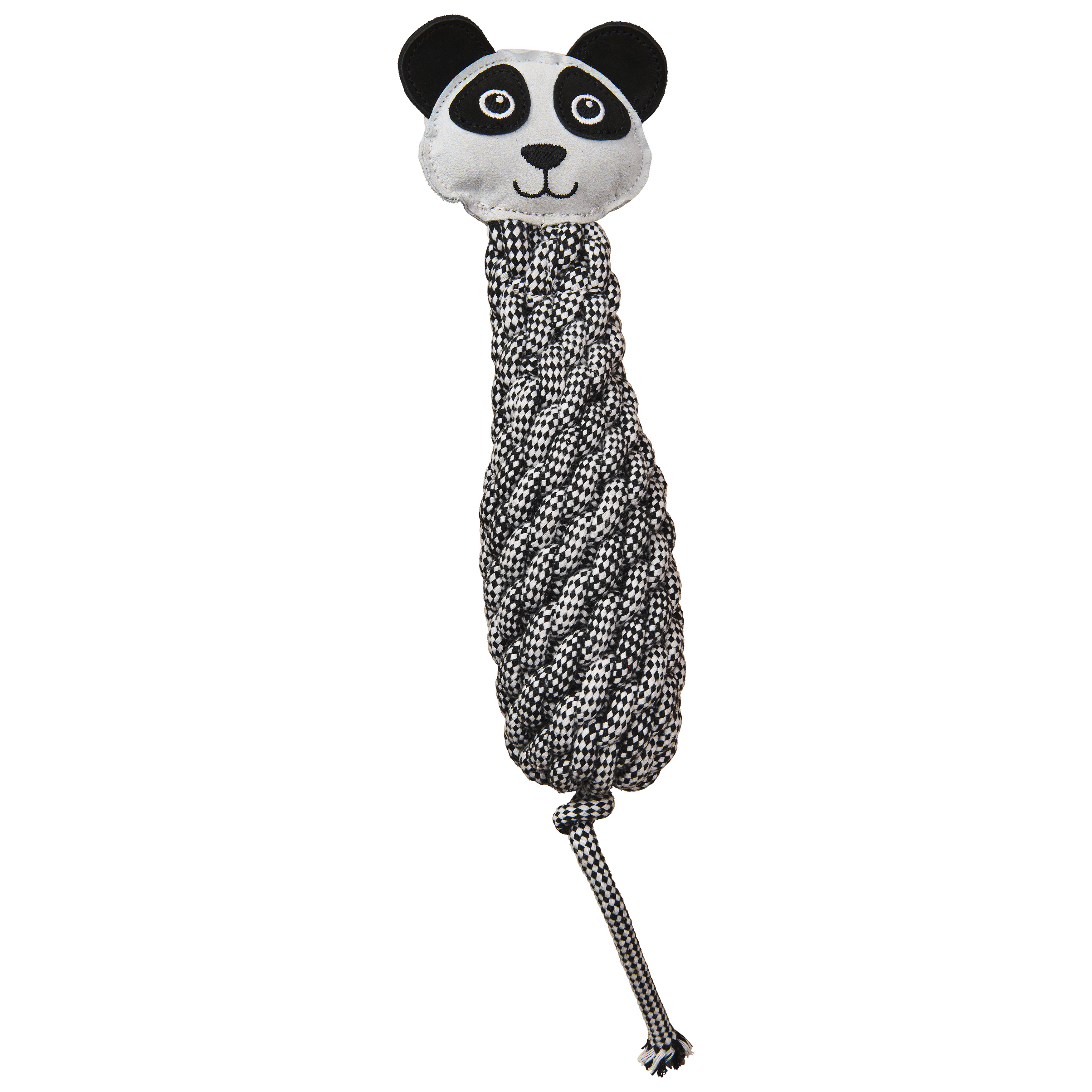 Dura-Fused Leather bottle Panda combines the durability of leather and rope with a fun water bottle. Super durable leather and jute fabric fused together for added strength. Squeak and crunch sounds satisfy the natural hunting instinct and provides interaction and stimulation. 16" tall and easy to pick up for a fun game of fetch.