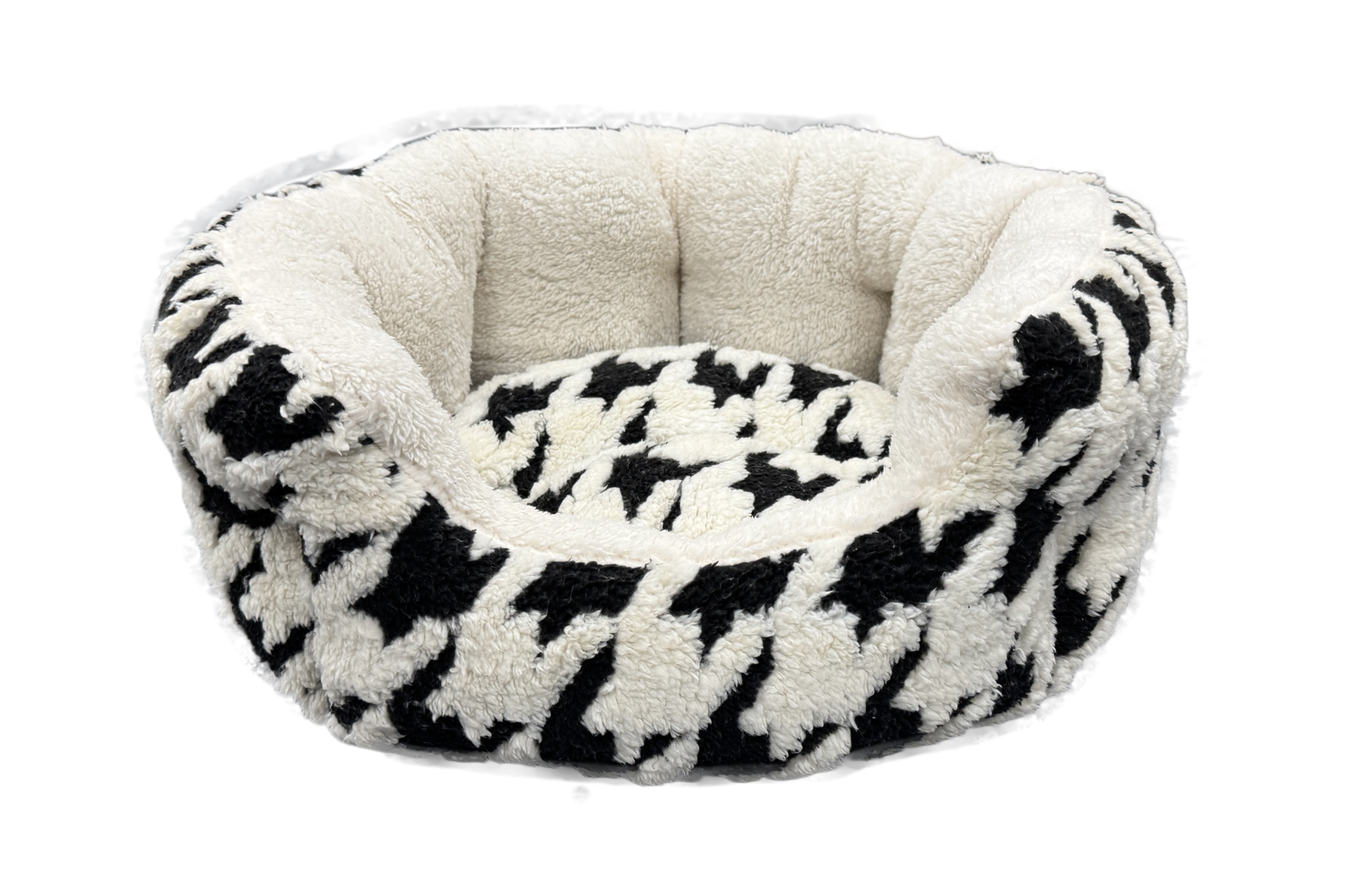 SZ HOUNDSTOOTH ROUND BED 24″ BLACK/WHITE